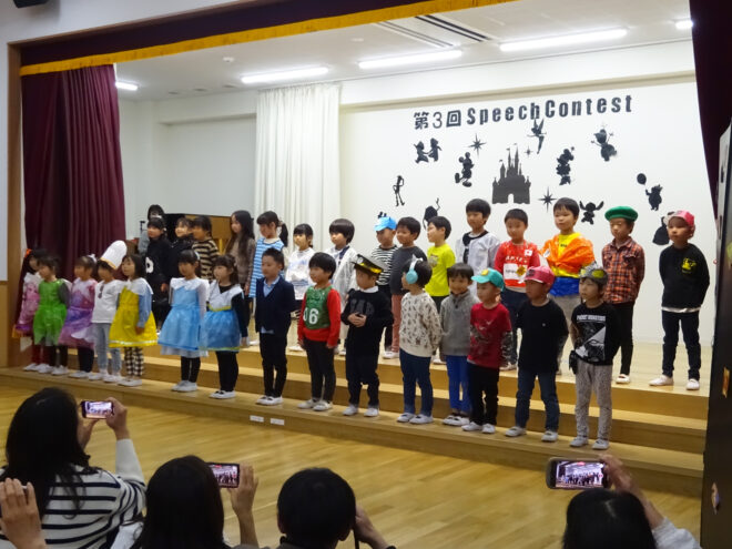 たくさんのお父さんお母さんの前でも頑張って英語を披露していました‼