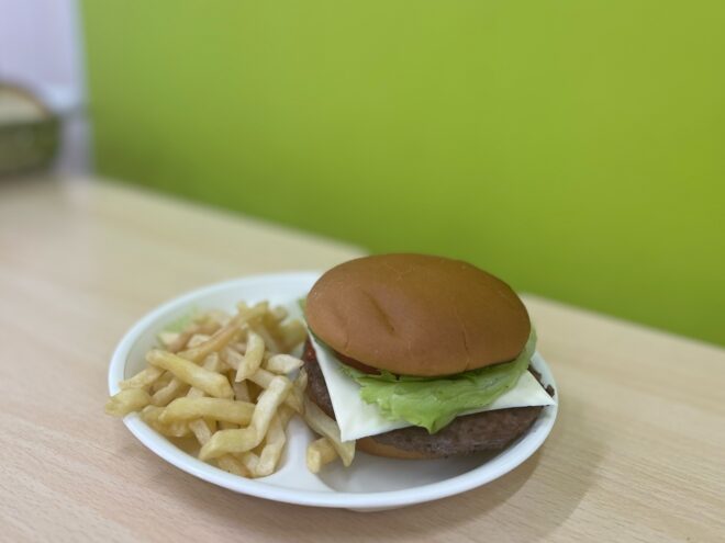 野菜をたくさん入れる子や、ダブルチーズバーガーにする子など、みんなそれぞれ、オリジナリティあふれる、美味しそうなハンバーガーができました!!