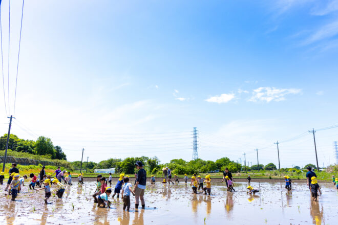 木の間インターナショナル保育園 2025.05.08 田植え 今年は、天候に左右されながら田植えができるか不安でしたが、無事田植え体験をすることができました‼ みんな元気いっぱい田植えに参加しました。泥だらけになりながらも楽しく体験できました。 農家さんありがとうございます。