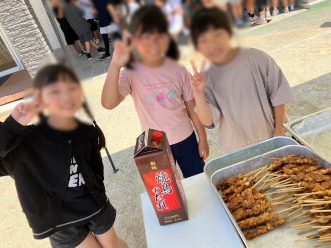 ⽊の間ニーニョスcome come 児童クラブ 2025.07.30 R7年度:7月 屋台風ランチ🐔🔥🍌 7/29(火)は、イベントランチ【屋台風ランチ】でした!! 午前中から、プルメリア本部スタッフが、みんなに美味しい焼き鳥を焼きにきてくれました!! クラスごとに外へ出て、焼き鳥が焼けるのを見学しながら、ポッキンアイスを食べます!! いつもの、園内の厨房で作られたものを配膳するランチに比べて、出来上がる過程を見届けられるのは、なんだか特別な気がします。 いい匂いに誘われて、食欲が湧いてきます!! いつも以上に楽しいランチタイムになりました!! 木の間ニーニョスComeCome児童クラブ:由良