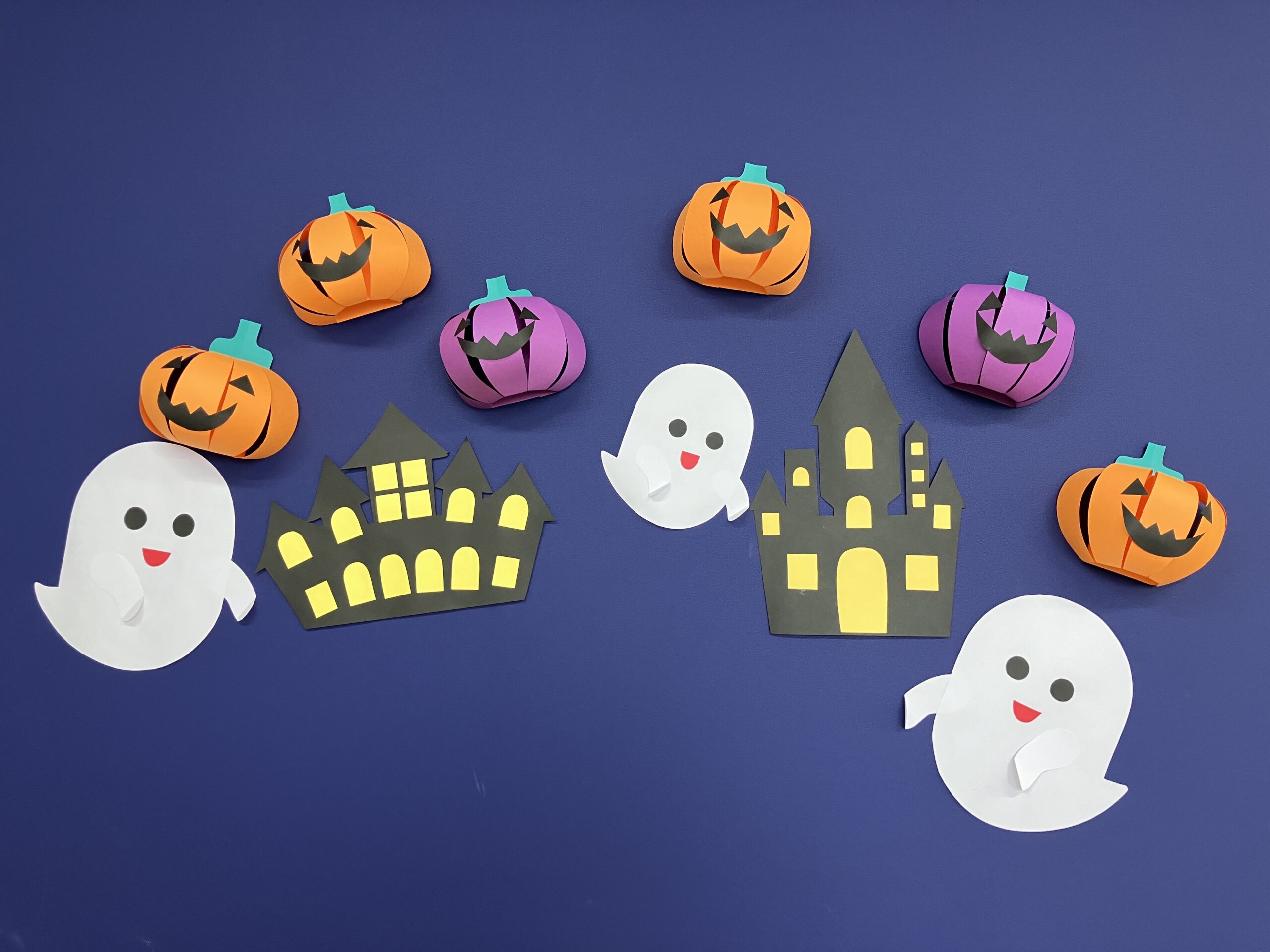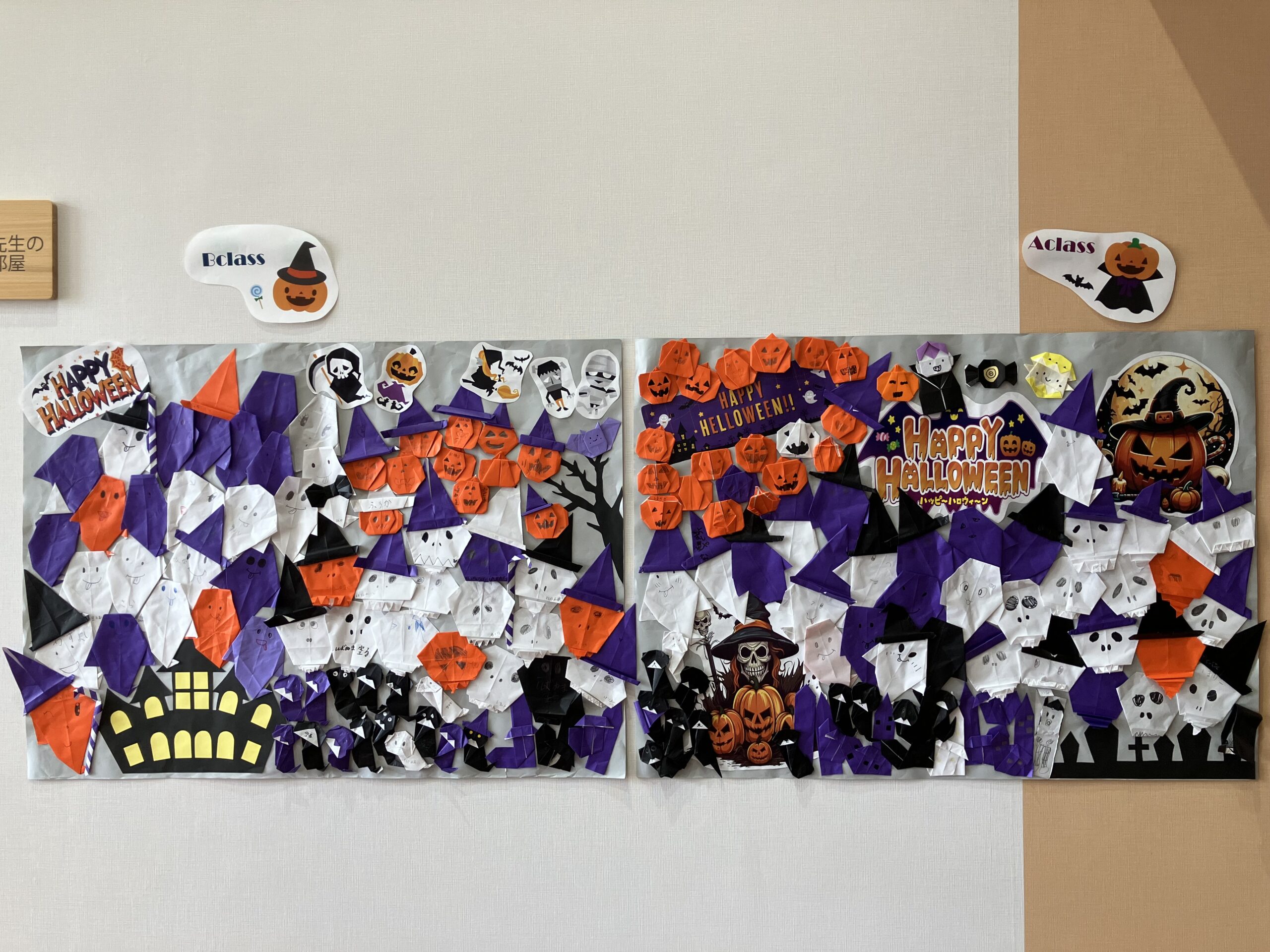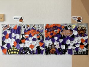 ↑ハロウィンにあわせて、クラスのみんなで折り紙の作品をつくりました!