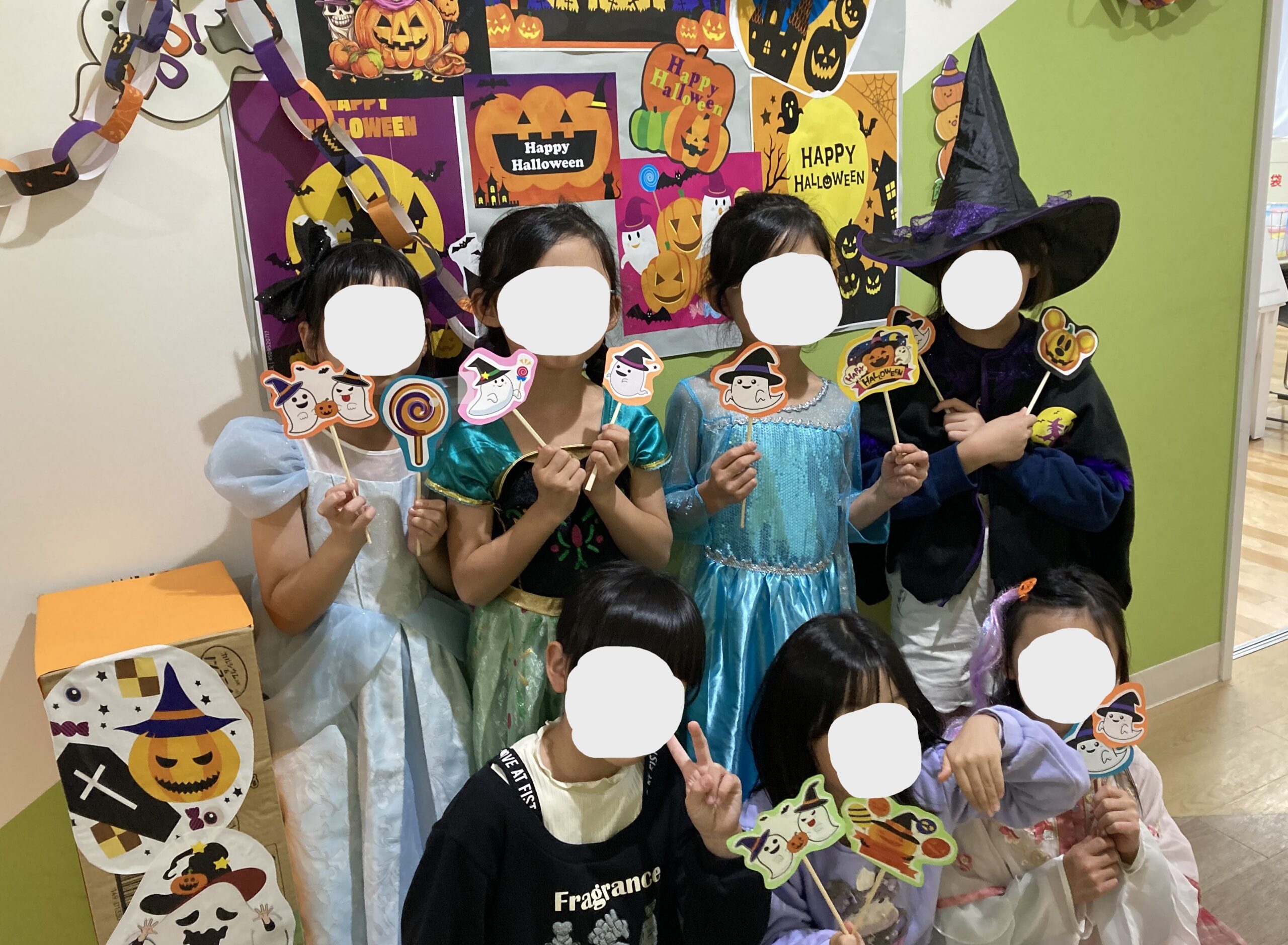 ニーニョスのハロウィンパーティーでは、仮装をして記念写真を撮ったり、ミニゲームをして遊んだりして先生やお友達と楽しい時間を過ごします!