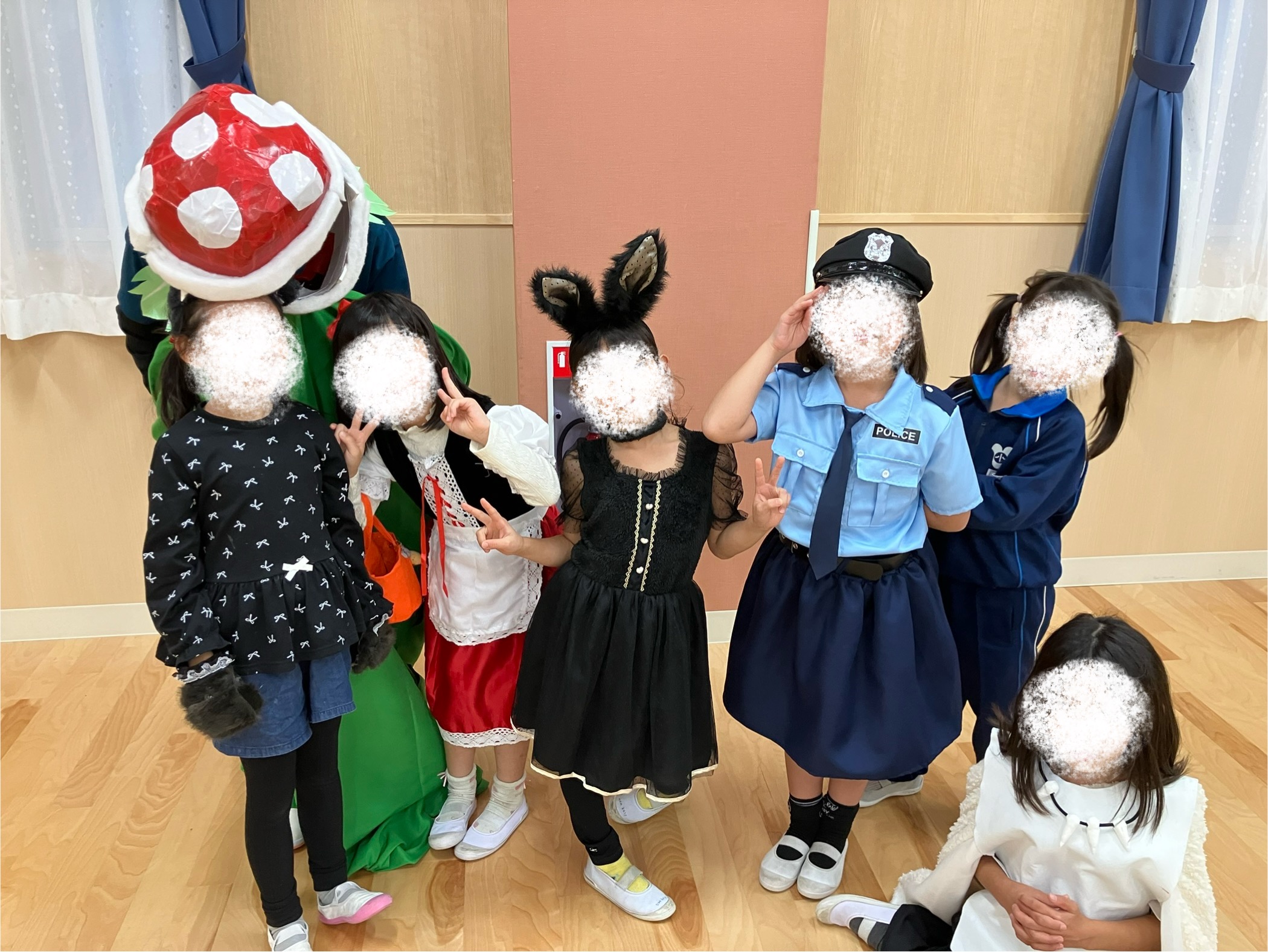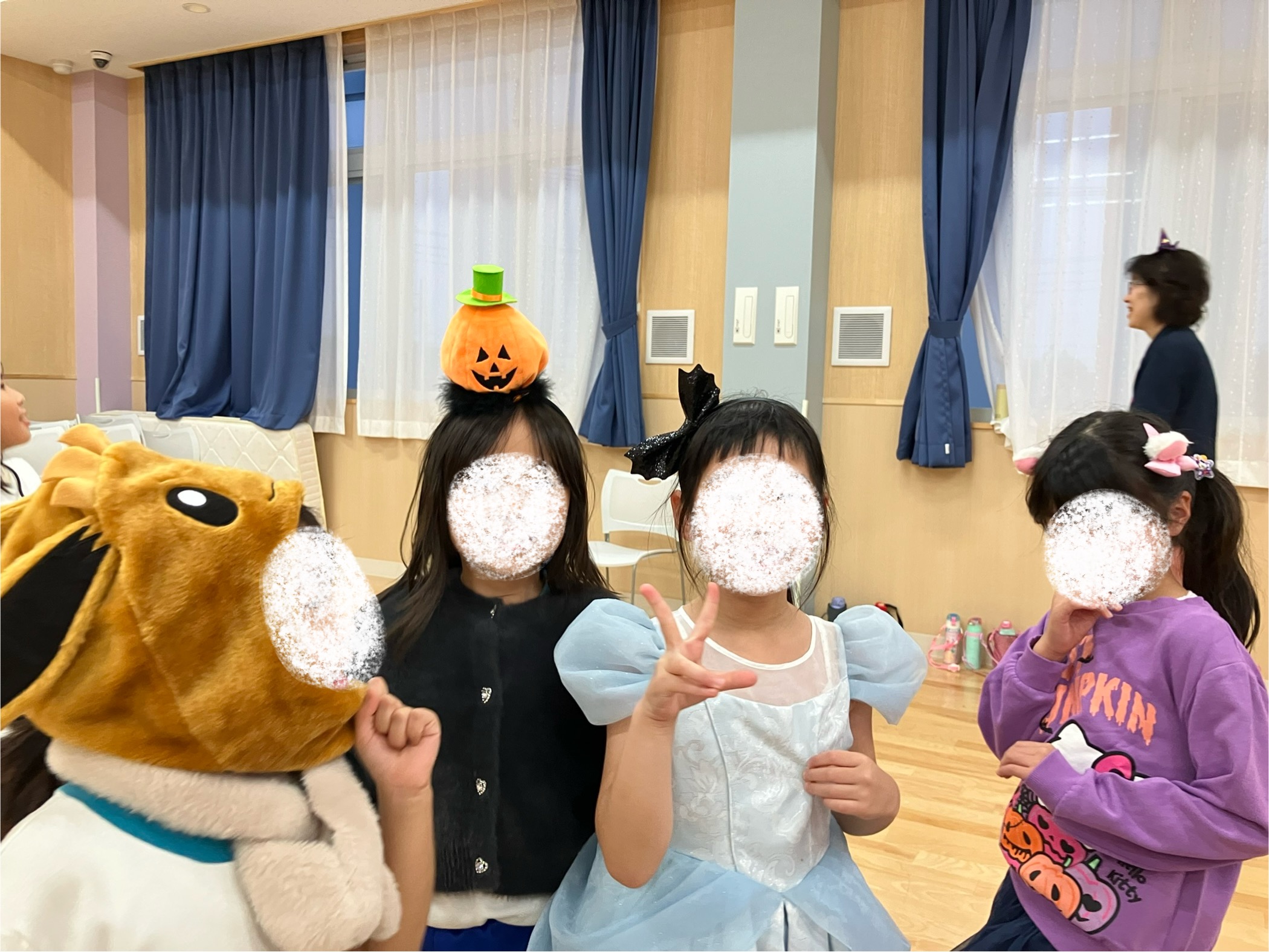 中には人気アイドルsnowm〇nの♪カリス〇ッ〇スを彷彿させる仮装の子や、ジブリ`もの〇け姫`サンの衣装を手作りして仮装してくれた子も!