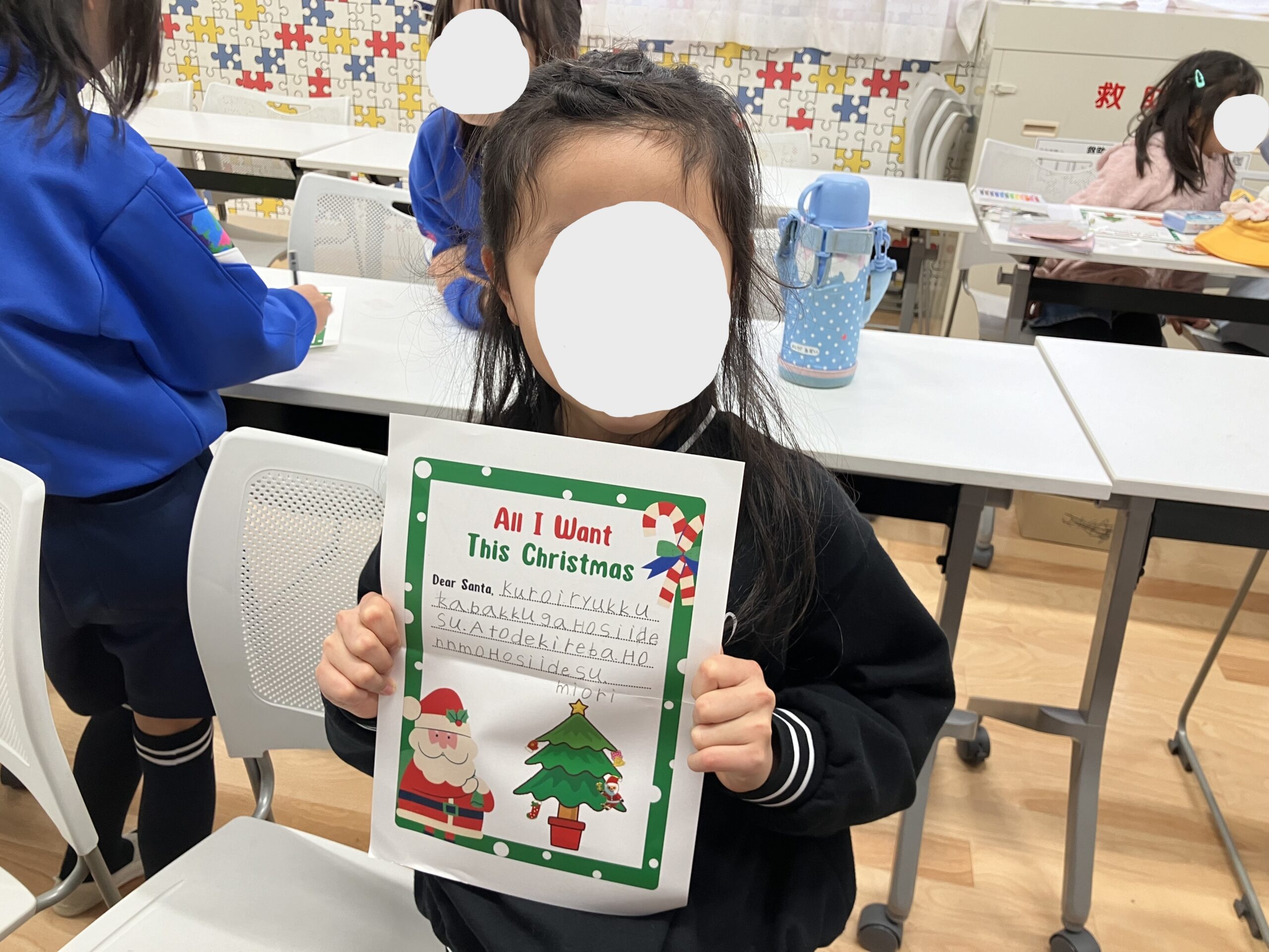 クリスマスプレゼントのお願いや、既にお家などでお手紙書いた子は、もしプレゼントがもらえたとき用にありがとうのお手紙を書きました!