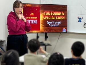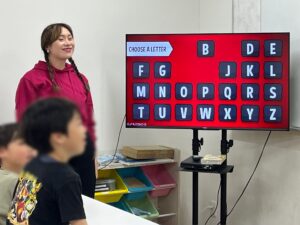 先日の学童の無料英会話では、映像を使ったチーム対抗の英語ゲームを行いました!