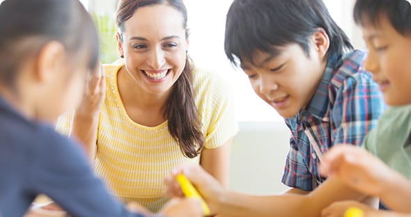 外国籍講師と触れ合いながらの英会話学習をはじめ、スポーツやダンス、宿題サポートなど、子どもたちが楽しみながら成長できる多彩なプログラムを提供しています。